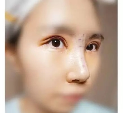 刚做完手术的样子,还贴着胶带呢,但看起来并没有很肿胀。因为使用微创技术,切口很小,使得肿胀幅度不大,眼部的线条也清晰可见,感觉整个面部立体感飙升。