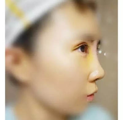 第五天,给大家看看侧面的效果,鼻根到鼻梁微微上翘的曲线美美哒,双眼皮宽窄适中,侧面曲线也很好。