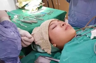 呼~好紧张喔!!这就是我术前的样子,深陷下去扁塌的鼻子,我一点都感觉不到痛~