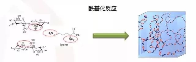 在催化剂作用下,透明质酸中的羧基与碱性氨基酸的双氨基以“水桥”形式链接,组成透明质酸的三级网状结构,在溶液中形成可溶性骨架,骨架内的活性成分随着透明质酸代谢逐步释放至皮肤内,起到缓释溶出的效果,此技术称为“网格缓释技术(SRN)”。