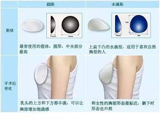 总的来说,选择隆胸假体时乳房的宽度、高度和突出度均是要考虑的。圆形假体会使您的乳房上部显示出圆形,更显乳房的挺拔、丰满。水滴型假体的形态则趋于自然形态。